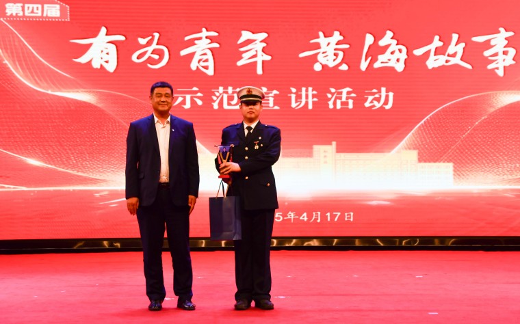 信息科学与工程学院退伍军人高晗以《携笔从戎,青春无悔——一位退伍大学生的军旅告白》为题,分享了五年海军陆战队生涯的磨砺与成长。从42度高温下的训练到执行重大安保任务,他用坚韧与担当诠释了军人精神。退伍后,他将“为人民服务”的信念融入大学生活,资助贫困学生、抢救突发疾病的同学,展现了军人本色。他呼吁:“参军吧!让青春与祖国的命运绑定,绽放最动人的光芒!”纪委书记、学生工作部部长赵国光为其颁发青春宣讲人纪念奖杯。
