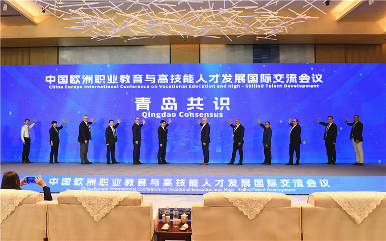 为深化中欧人才合作,应对数字化时代技术人才供给不足,数字培训发展不均衡等挑战,会上发布了中国欧洲职业教育与高技能人才发展国际交流会议(青岛)共识。刘常青董事长作为重要嘉宾上台参与发布仪式。“共识”提出推动标准互认与资源共享、强化校企合作与产教融合、构建动态课程与认证体系、提升数字实训普惠性四大战略行动方向,为中欧职业教育合作勾勒出宏伟蓝图。