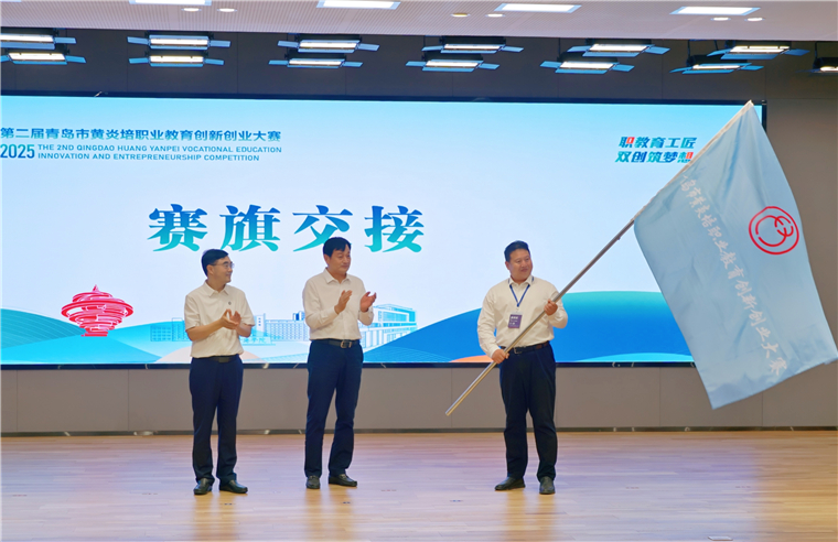 颁奖仪式现场还举行了赛旗交接仪式,赵胜村副市长将赛旗交给第三届大赛承办单位青岛港湾职业技术学院,标志着下一届赛事筹备工作正式启动。