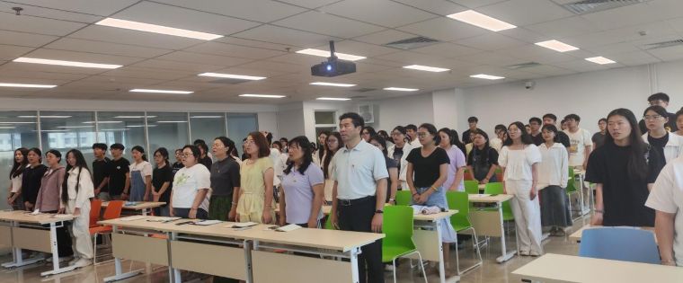 6月20日下午,国际商学院与数字商务学院党总支2025年上半年入党积极分子培训班开班典礼在知信楼435教室举行。在雄壮嘹亮的国歌声中,全体参会人员肃立致敬,饱含深情地合唱这首凝聚民族精神的赞歌。激昂的旋律中洋溢着对党的赤诚之心,在庄重热烈的氛围中,本次开班仪式正式启幕。