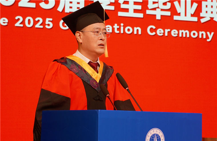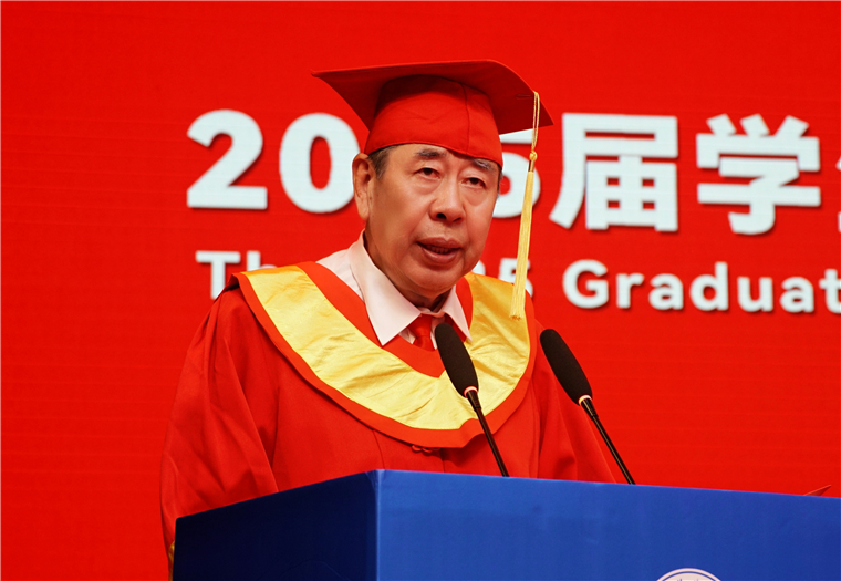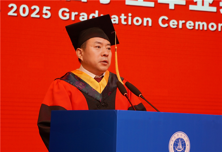 李清山校长以《与时偕行赴山海,明德修身绽芳华》为题在毕业典礼上讲话。他代表学校,向圆满完成学业的同学们表示热烈的祝贺!向在同学们成长过程中,用心、用情、用爱教导培育你们的老师、父母以及每一个关心和帮助你们的亲友,表示崇高的敬意和衷心的感谢!山高路远,折柳惜别,临别之际,作为师长和朋友,他向毕业生们提出三点寄语和期望,与大家共勉:一要勤奋务实,积极面对生活。希望同学们不要为外物所扰,不要为私利所动,不要为流俗所惑,要坚守内心向往的目标,平静坦然地面对压力,克服好高骛远、坐享其成的心态,保持虚怀若谷、百折不挠的人生态度,把融入社会作为人生的“必修课”,把面对困难作为成长的铺路石,不断锤炼本领、实现人生价值。二要勤学不辍,保持终身学习。希望同学们牢记“业精于勤,荒于嬉”的古训,坚持“学思用贯通,知信行合一”,把终身学习作为自我发展的第一需要,以刻苦钻研的精神、持之以恒的态度加强学习,挤时间,下苦功。主动向书本学习、向实践学习、向同事学习,与时代同呼吸,与知识共成长!三要正己修身,涵养高尚品德。希望同学们在今后的道路上,能够自觉加强思想道德修养,坚持正确的人生价值取向,始终保持积极的人生态度,树立和践行社会主义核心价值观,以明净之心明辨是非,以专业技能守护真理,以人文情怀温暖社会,于浮躁中守住淡泊,在诱惑前保持清醒,追求更有高度、更有境界、更有品位的人生。