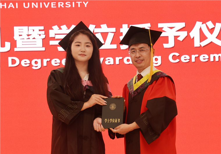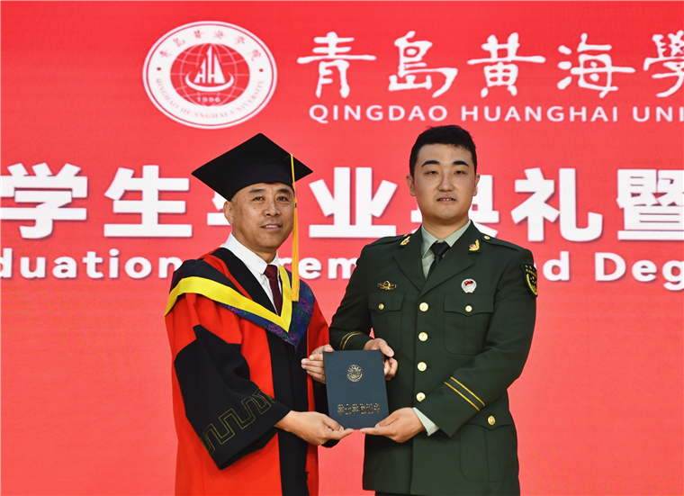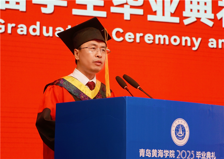 校友代表、2013级机械设计制造及其自动化专业校友李红珂博士发言。他分享了自己从黄海启航,一路考研、读博的人生经历。他勉励毕业生们要筑牢根基,敬畏“知行”二字;要拥抱挑战,视困难为阶梯;要心怀感恩,肩负责任前行。祝福大家以黄海为舟、以梦想为帆,勇敢奔赴属于自己的星辰大海!