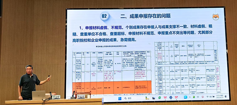 齐教授首先梳理了山东软科学科技成果奖的发展历程及近年申报评审动态,强调该奖项在推动地方软科学研究与实践结合中的重要作用。随后,他结合典型案例,分析了当前申报中存在的共性问题,如选题创新性不足、成果应用价值论证不充分等,并针对性地提出优化建议。在“申评精要”环节,齐教授从评审标准、材料撰写、成果凝练等角度详细进行了解析。