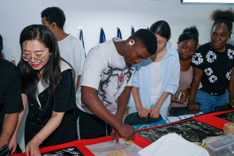 活动尾声,留学生们手持非遗作品,与师生们分享创作感悟。留学生们纷纷表示,中国非遗像一座深邃的宝库,每一针一线、一刀一刻都藏着千年的智慧。这次学习让我们不仅触摸到了传统文化的温度,更在与中国朋友的合作中,感受到了文化交融的温暖。未来,我们希望能有更多机会深入探索中国非遗,也期待把这些技艺带回自己的国家,让更多人了解、爱上中国文化。