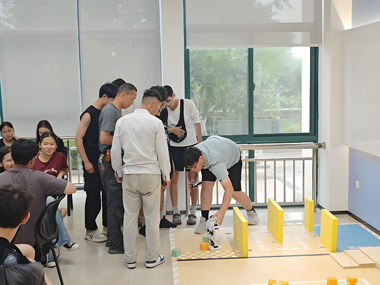 避障机器人赛道比赛、双足竞步机器人赛道比赛、循迹小车跑赛道等项目依次展开,每个项目都充满挑战与乐趣。在创新工作室学生和老师的悉心指导下,研学高中生们热情高涨,从基础的机器人操作,到亲自上手进行程序调试,全程深度参与。他们全神贯注地盯着屏幕,认真调整每一个参数,反复测试机器人的运行效果。现场气氛热烈,充满了欢声笑语与思维碰撞的火花,处处展现着青春与科技交融的活力。