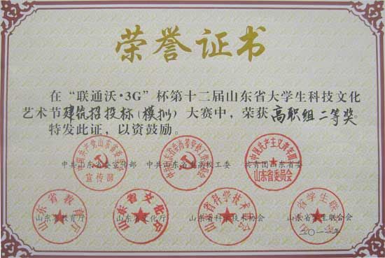 10月29日,中共山东省委宣传部、中共山东省委高校工委、共青团山东省委、山东省教育厅、山东省文化厅、山东省科学技术协会、山东省学生联合会主办,山东英才学院承办的“联通沃3G杯”第十二届山东省大学生科技文化艺术节建筑招投标设计大赛在山东英才学院隆重举行。我院由建筑工程学院选派的“无极限”和“扬帆”两支参赛代表队在李云贵、安丽洁、李浩、马兰四位指导老师的带领下取得佳绩。其中“无极限”和“扬帆”两支代表队分获建筑招投标模拟大赛(高职组)二等奖和三等奖,我院获得“优秀组织奖”。