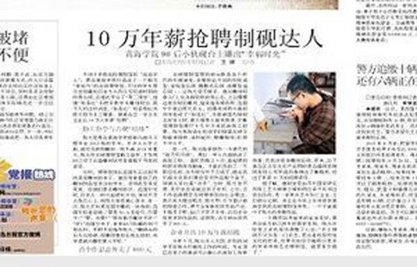 【青岛日报报道】10万年薪抢聘制砚达人----黄海学院90后小伙砚台上雕出“幸福时光”