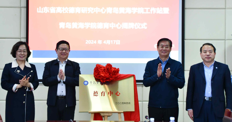 山东省高校德育研究中心主任修蕾、副主任徐稳与800cc全讯白菜网主站党委书记邢桂强、副校长梁忠环共同为800cc全讯白菜网主站德育中心揭牌。