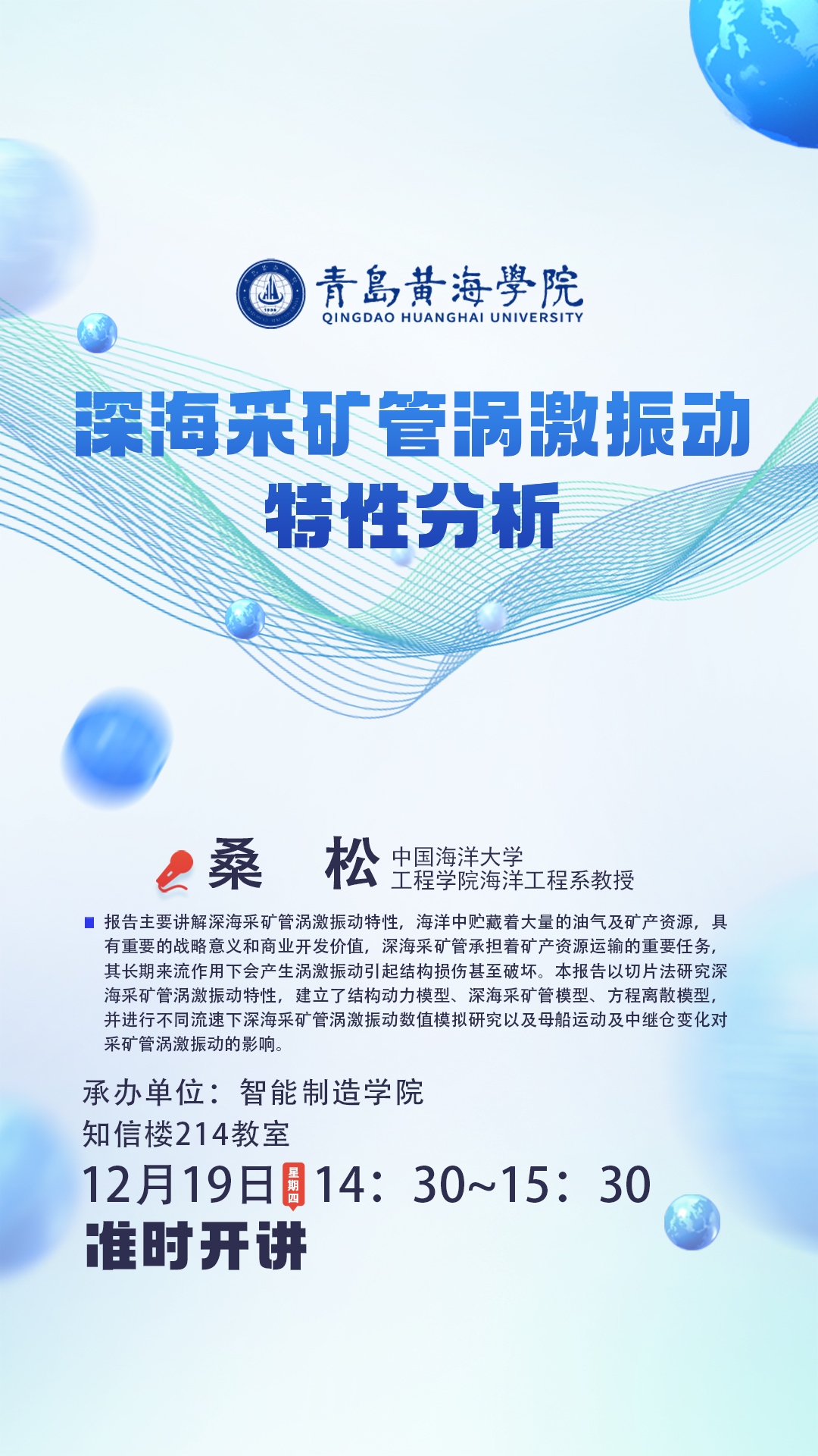 专家介绍:桑松,中国海洋大学工程学院海洋工程系教授,青岛市造船学会会员,山东省海洋工程咨询协会会员,国家自然科学基金委网络通讯评委。主要研究方向为深海浮式结构/立管/系泊系统耦合动力响应研究, 深海钝体绕流及立管涡激振动(运动)研究,深海浮式风电结构动力响应研究等。主持并参与十余项国家自然科学基金、山东省自然科学基金科研项目研究,发表北大中文核心以上论文三十余篇。