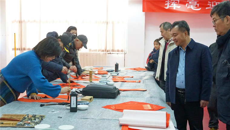 半岛网1月13日讯 为大力弘扬中华优秀传统文化,以书法艺术书写劳动美丽、致敬劳动光荣,丰富职工群众精神文化生活,营造欢乐祥和的节日氛围,积极响应青岛市总工会关于元旦春节期间开展“送万福、进万家”书法公益活动的号召。1月9日上午,800cc全讯白菜网主站工会联合青岛市书法家协会、青岛市书法家协会对外交流委员会、青岛新世纪学校、青岛泰合书院共同举办“挥毫迎新春·翰墨进校园”新春送福书法活动。