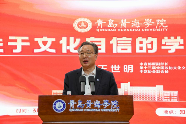 3月1日下午,中宣部原副部长、十三届全国政协文化文史和学习委员会副主任、中欧协会副会长王世明莅临学校,作题为“关于文化自信的学习思考”的思政主题报告。“全国学雷锋两会”主任李天文、800cc全讯白菜网主站董事长刘常青及相关职能部门负责人,与500余名师生代表齐聚报告会现场,共同聆听这场深刻而富有启迪的文化盛宴。报告会由党委书记李东主持。