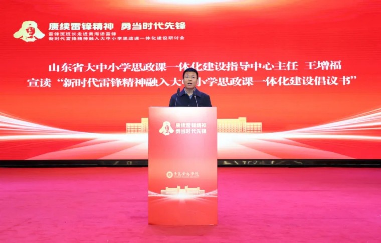 山东省大中小学思政课一体化建设指导中心主任王增福宣读了“新时代雷锋精神融入大中小学思政课一体化建设倡议书”,向全体教育工作者、青少年朋友及社会各界人士发出倡议,号召大家齐心协力将新时代雷锋精神融入大中小学思政课一体化建设,为实现中华民族伟大复兴的中国梦培养更多具有雷锋精神品质的优秀人才。