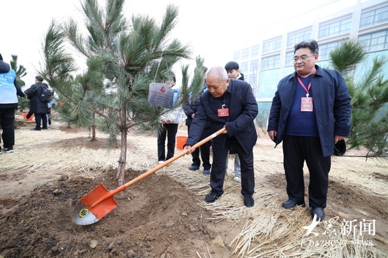雷锋班第四任班长曲建文在学校雷锋林栽树。