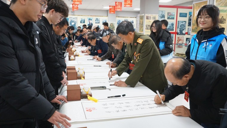 栽植完“雷锋林”后,雷锋班班长们来到雷锋馆,挥毫泼墨,手书寄语黄海学子。“助人为快乐之本,敬业为成功之母”“雷锋精神永不过时”“赓续雷锋精神,弘扬向善力量”……