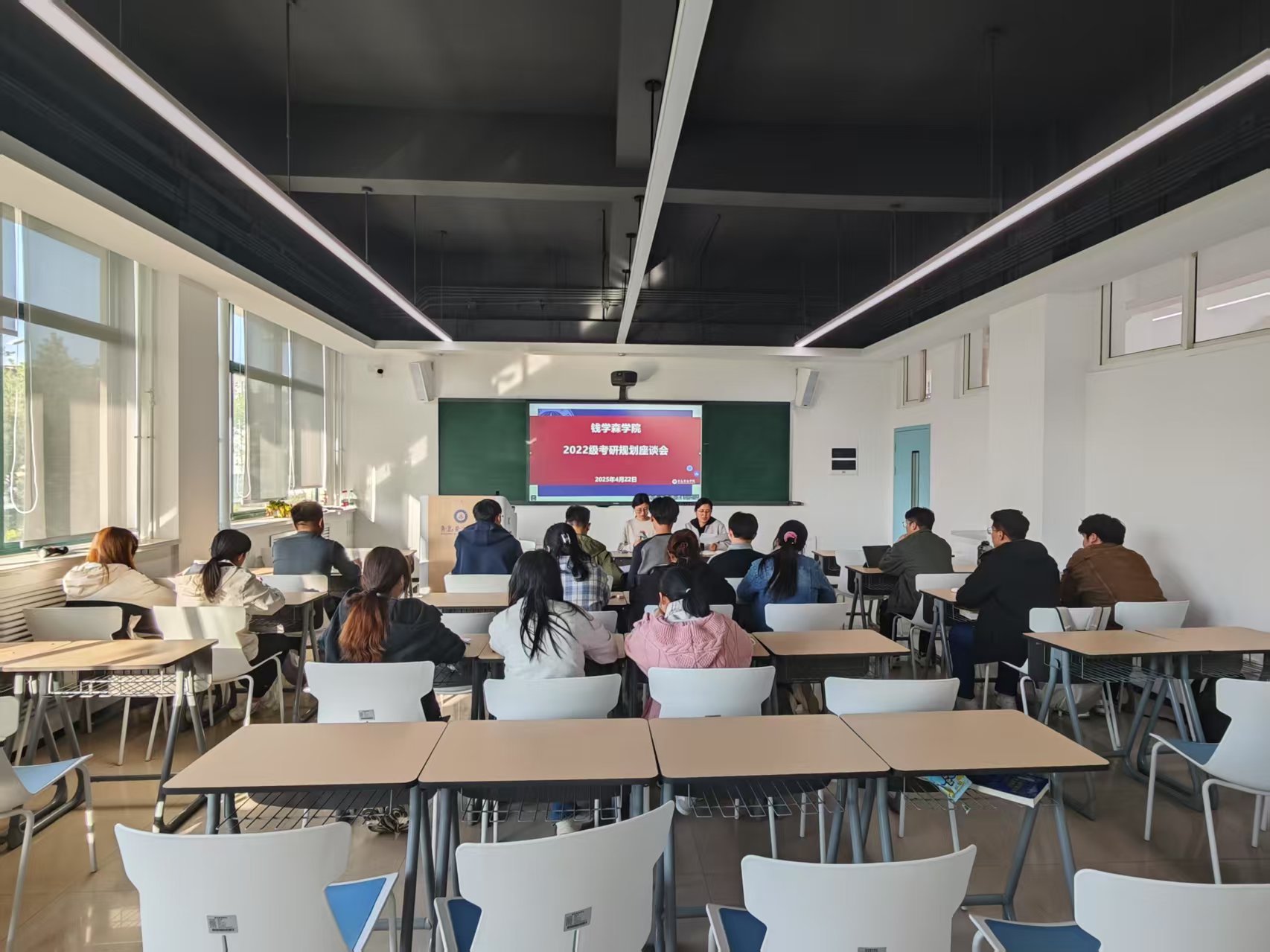 为助力2026届考研学子明晰考研方向,疏解备考压力,4月22日16:00,钱学森学院在知行楼125教室举办2026届考研助力院长座谈会。学院副院长陈玉杰担任主讲人,学院考研工作负责人周曼丽老师与2022级全体同学共同参与。