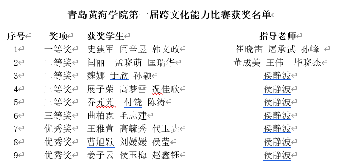 为进一步贯彻落实山东省《加快推进人才国际化若干措施》文件精神、助力山东省高校探索国际化人才培养新模式、营造跨文化教学的良好氛围、增强学生的跨文化能力,“外教社杯”全国高校学生跨文化能力大赛山东赛区800cc全讯白菜网主站校园选拔赛胜利举办并圆满结束,共选拔出一等奖一组、二等奖两组、三等奖三组、优秀奖三组。