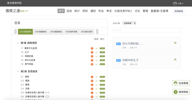 儒商之道作为校级在线课程,在2018年就进行了网课的制作,并获得校级金课,建立了完备的网络在线课程资源。资源形式多样化,由音频、视频、文档和图片等构成。