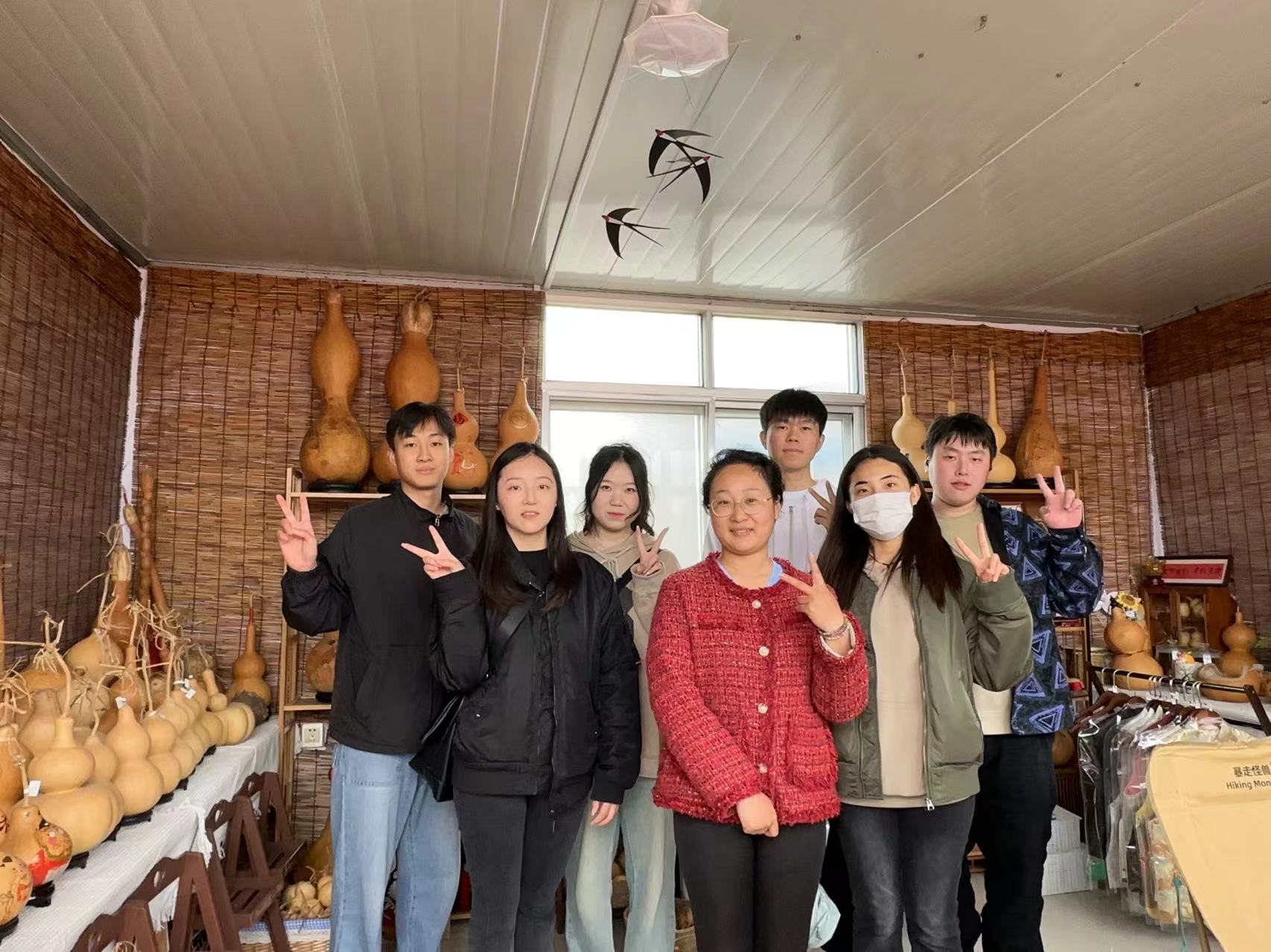 在原木艺术,师生们则着重关注了店主人想要传承和的文化内涵和品牌形象。他们一同研讨相关市集活动、文化讲座、鉴会等举办可能性和意义,进一步提升游客通过休闲旅游,走进乡村,在放松愉悦的氛围中了解中华传统文化。同时,同学们对陶瓷玻璃艺术产品的包装和周边产品创新进行了深入的沟通。