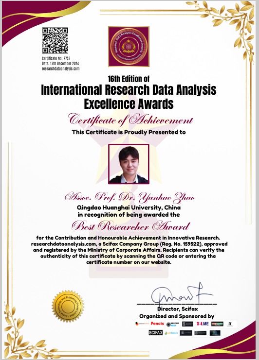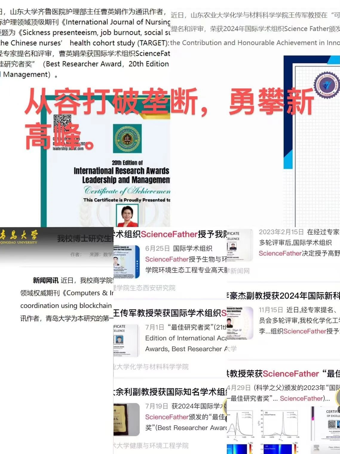 2024年12月14日,国际商学院教师赵允灏在“物联网”研究方面取得重要进展,经过专家提名和多轮评审,获得国际学术组织Science Father授予的2024年“最佳研究者奖”( Best Researcher Award)。据悉,该奖项主要授予在SCI、SSCI发表创新研究作出贡献和取得成就的学者。
