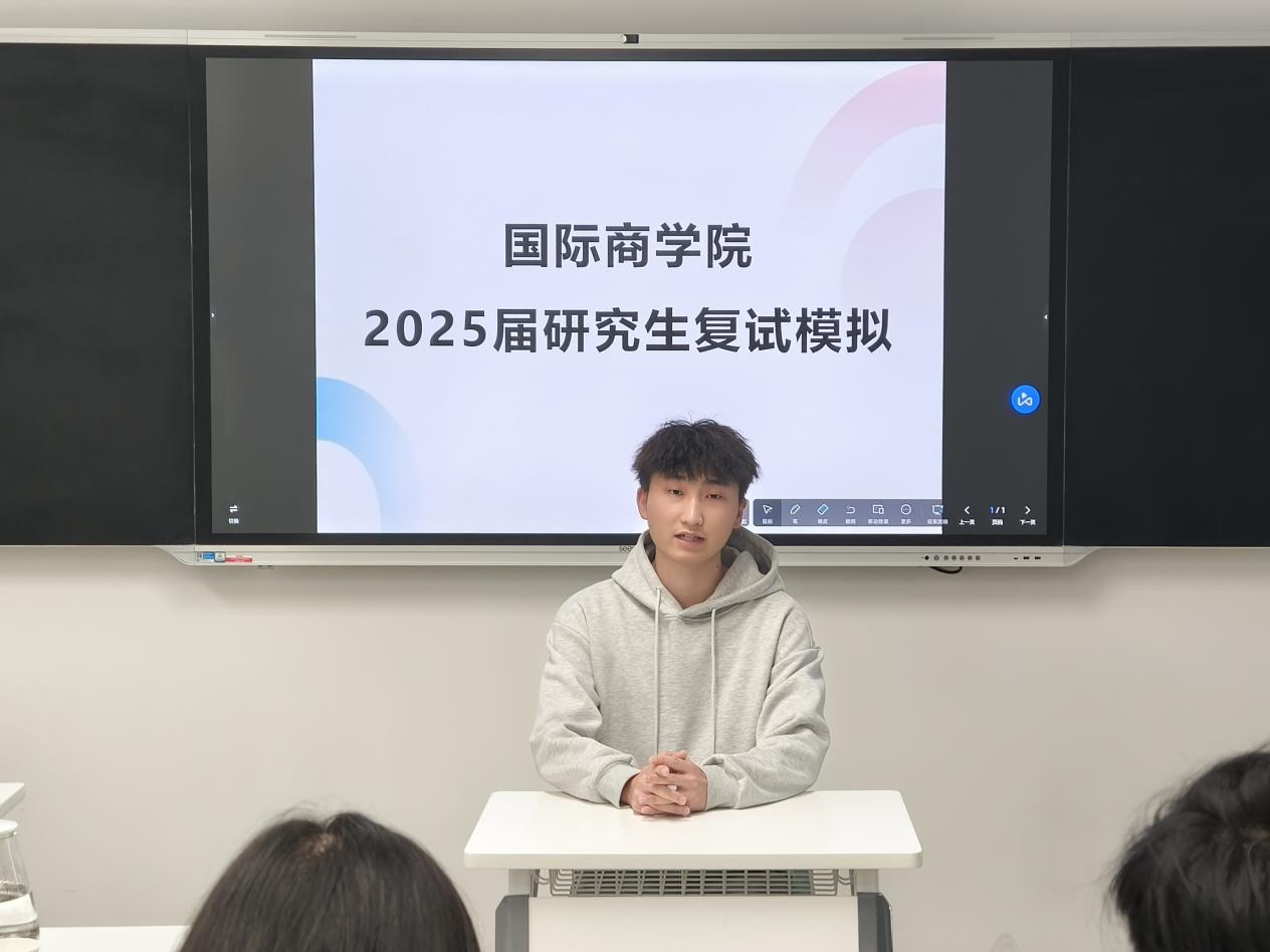 2025年3月20日,为帮助2025届研究生考生更好地适应复试流程,提升应试能力,国际商学院成功举办了2025届研究生复试模拟活动。各研究生考生积极报名参加,现场气氛紧张有序。