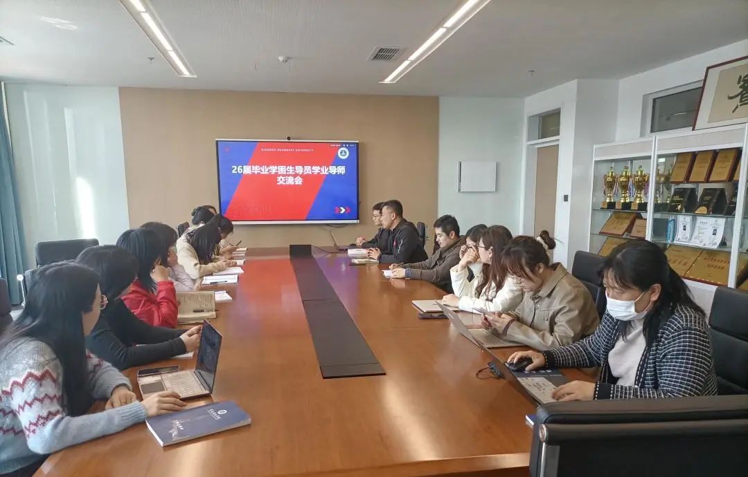 4月2日,国际商学院财会金融系在知信楼406会议室召开了2026届毕业生导员学业导师交流会。本次会议旨在通过辅导员与学业导师的深入交流,共同探讨针对部分学分未达标学生的有效帮扶措施,为提升毕业生的学业水平和就业竞争力提供有力支持。本次交流会由财会金融系副主任薛洋主持,财会金融系主任姜作鹏、部分辅导员和学业导师参加了此次交流会。