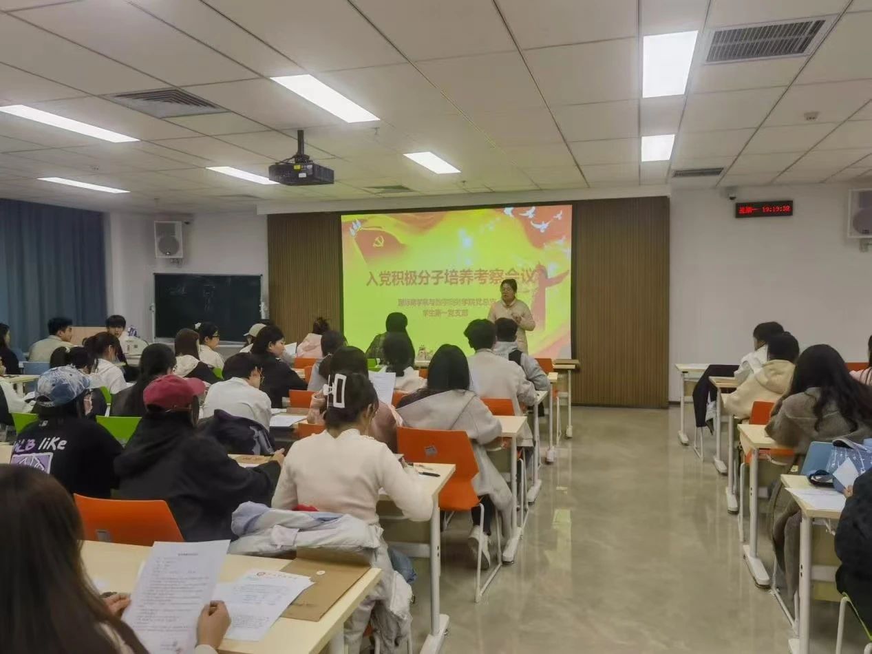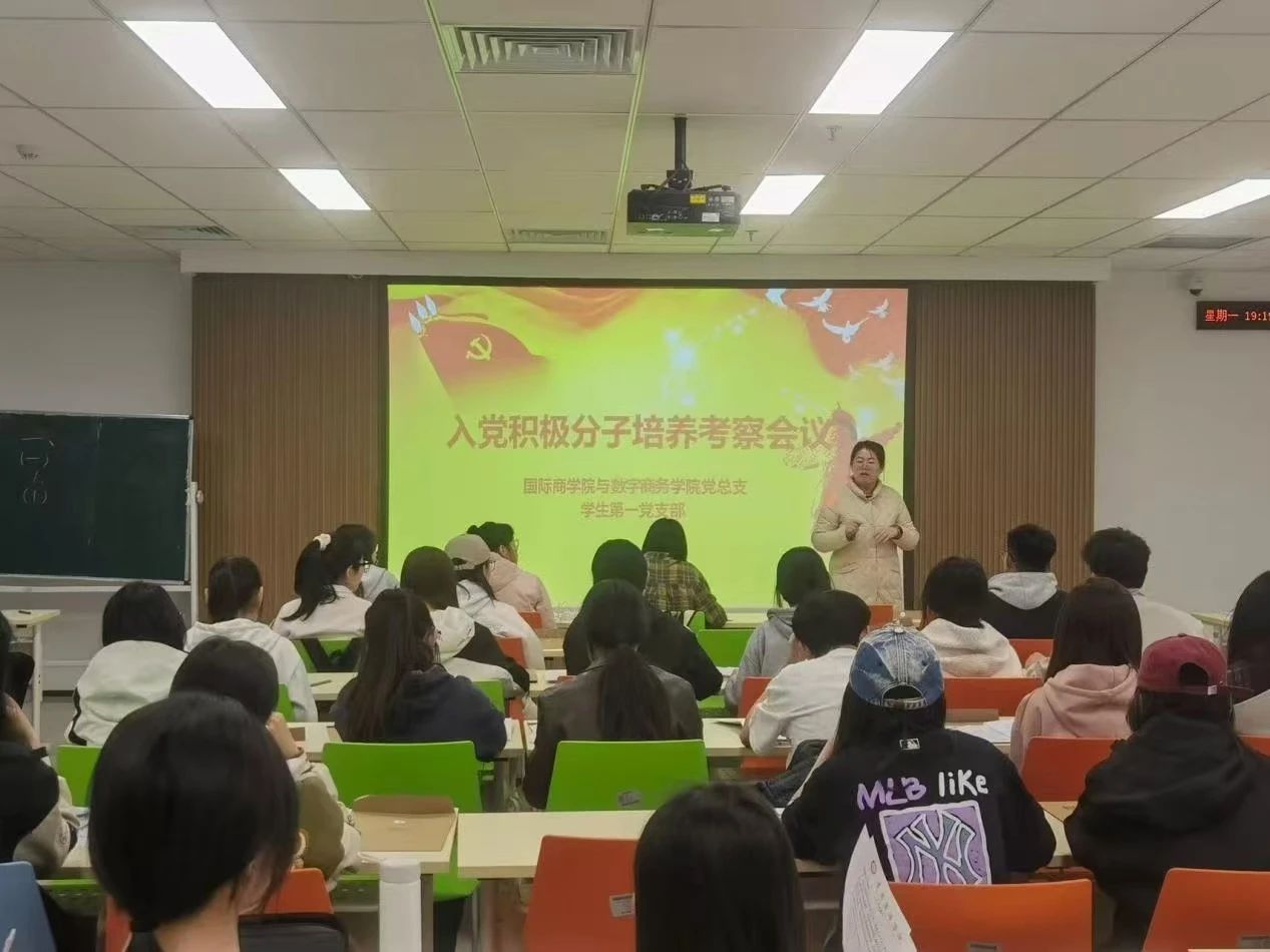 为进一步加强学生党员队伍建设,严把党员发展“入口关”,近日,国际商学院与数字商务学院学生第一党支部组织开展“入党积极分子培养考察专题会议”。会议由支部组织委员鲁昀老师主讲,全体入党积极分子及支部党员代表参加,旨在深化思想引领,夯实培养基础,为党组织输送高质量新生力量。