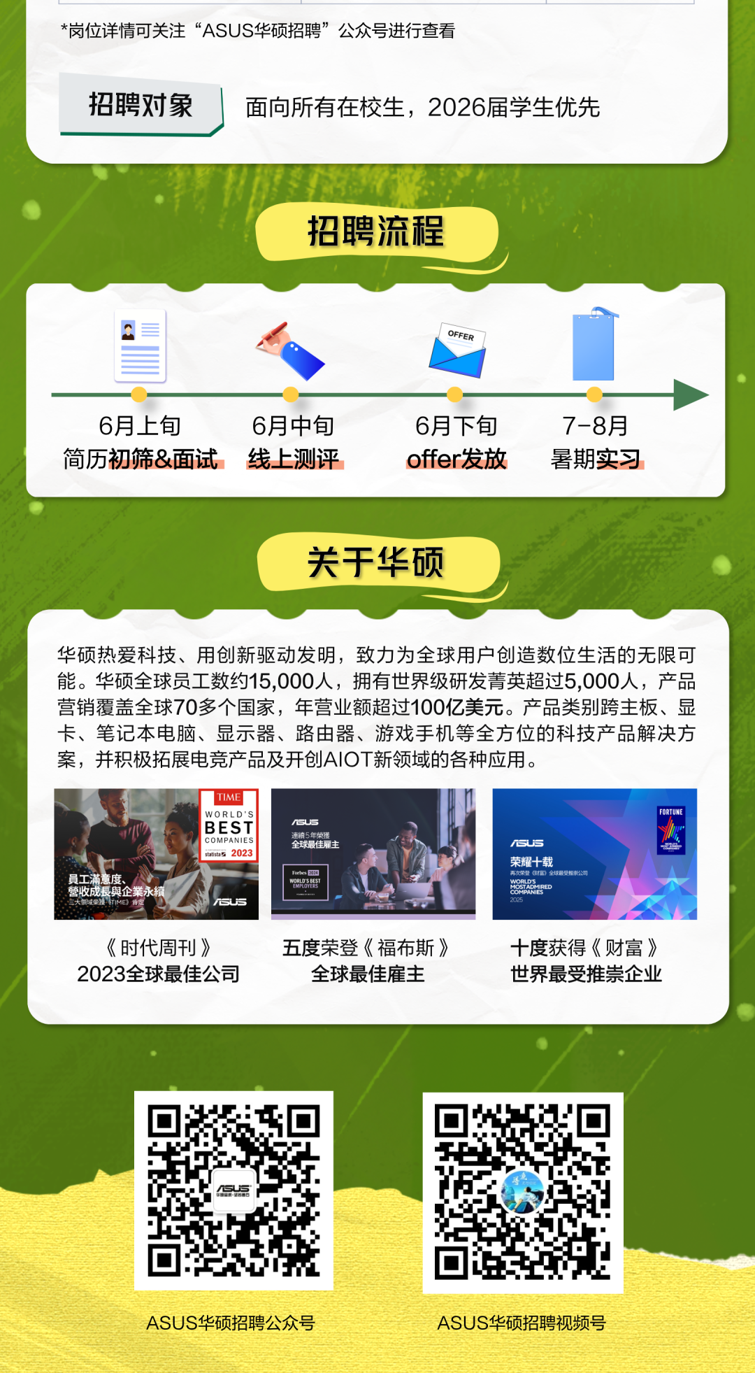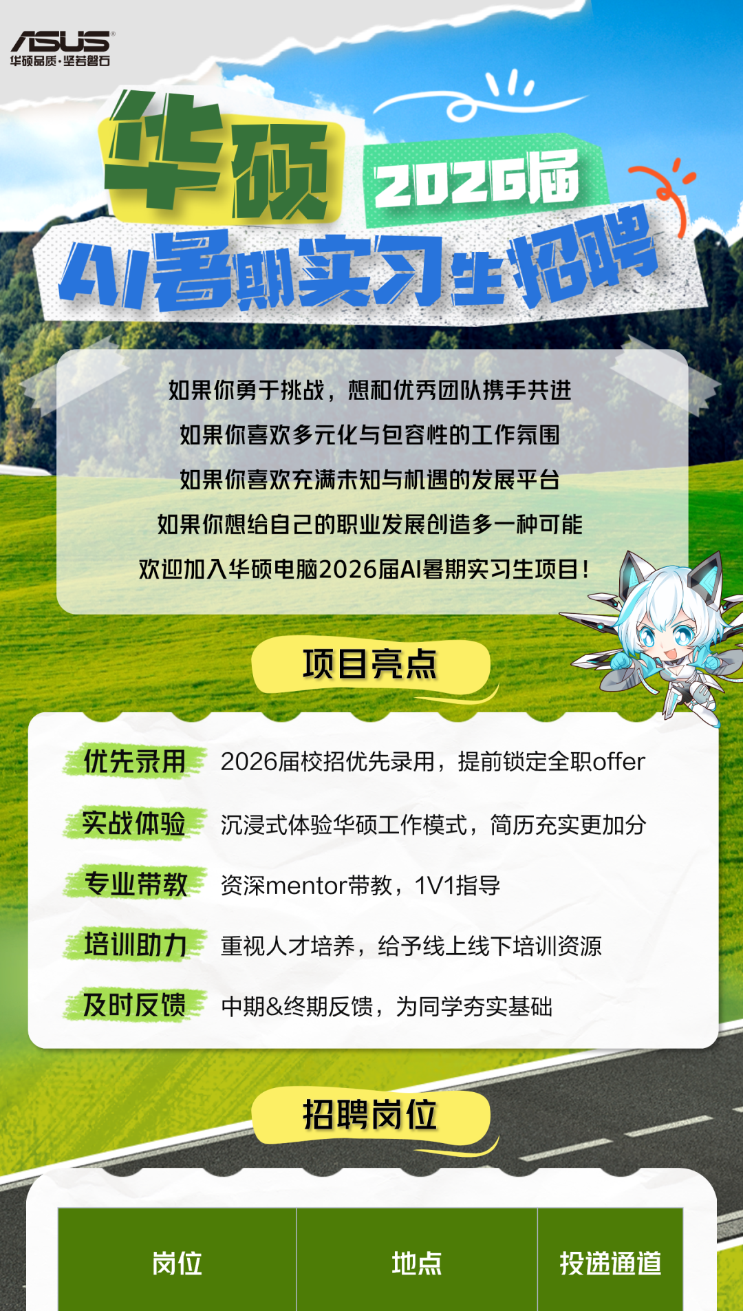 招聘信息 | 华硕电脑2026届AI暑期实习生招聘正式启动!