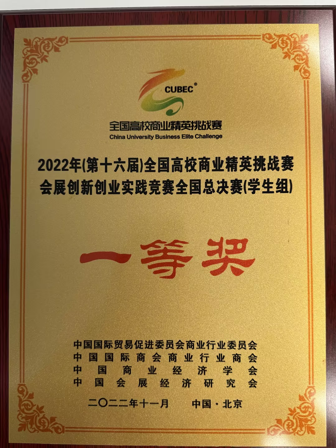 2022年(第十六届)全国高校商业精英挑战赛会展创新创业实践竞赛全国总决赛(学生组)一等奖