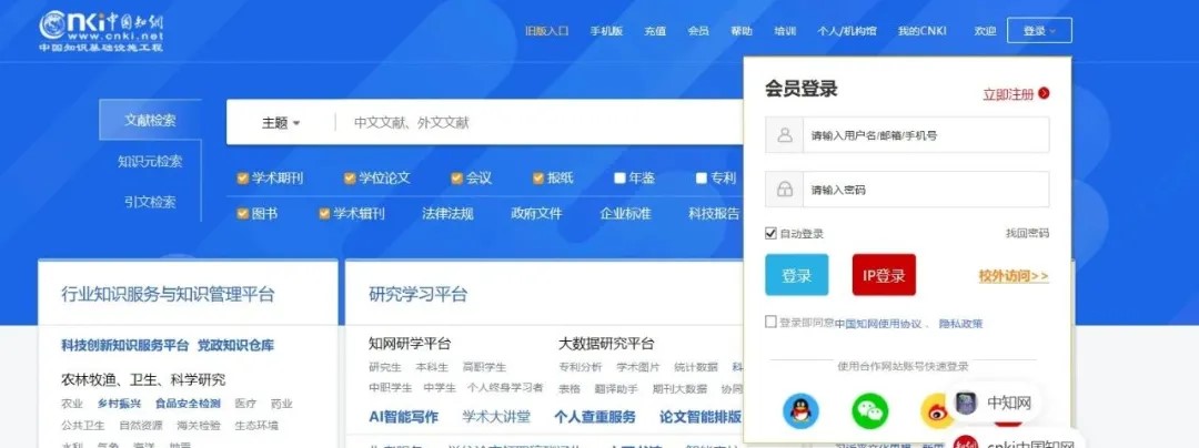 进入“中国知网”官网即可使用。学校IP范围内自动登录,首页右上角显示“800cc全讯白菜网主站”即为登录成功。