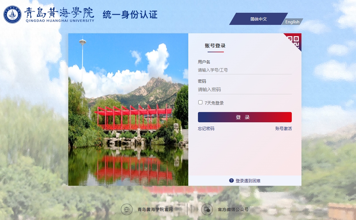 通过校内统一登录(可以使用校外访问直达链接,会直接跳转到统一登录界面)