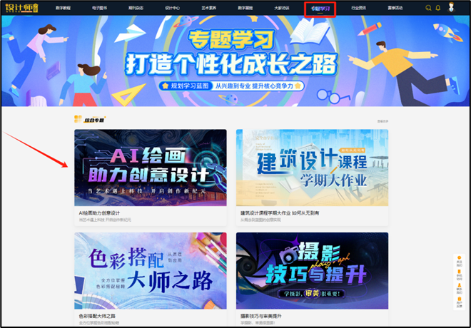 进入【综合专题】,可跟随专业规划编排的学习内容,由基础到实操,系统完整学习相关主题课程内容;