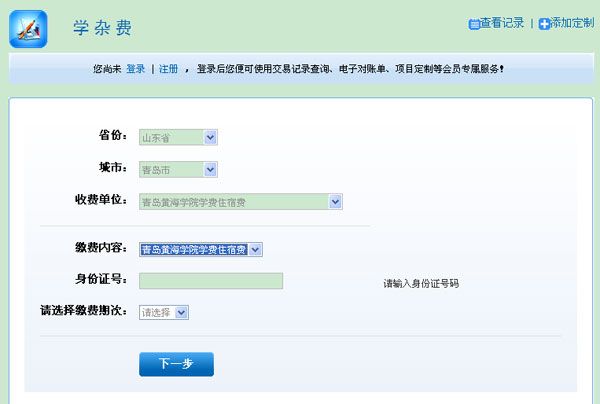 通过学杂费进入缴费页面,按提示依次输入山东省、青岛市;缴费单位和缴费内容均选择800cc全讯白菜网主站学费住宿费(缴费期次无需填写),之后输入身份证号查询个人缴费金额,确认无误之后进行缴费,缴费成功之后不会再查询到个人信息。