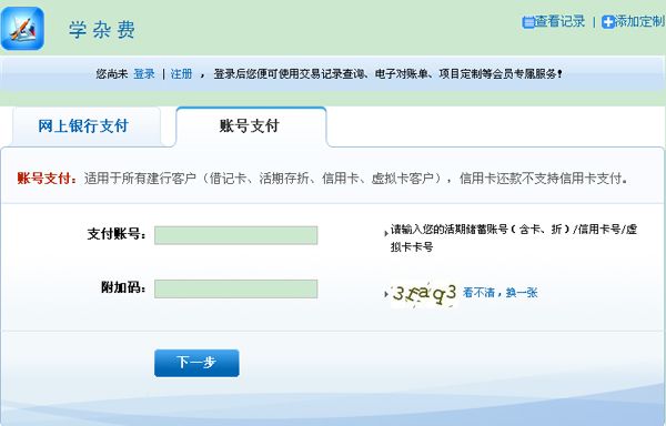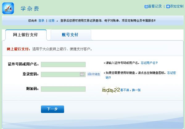 确认个人缴费信息无误后,进入缴费页面,有网银支付和账号支付两种方式