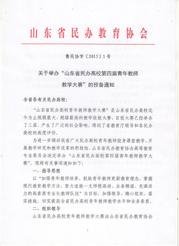 关于举办山东省民办高校第四届青年教师教学大赛的通知(预备通知)