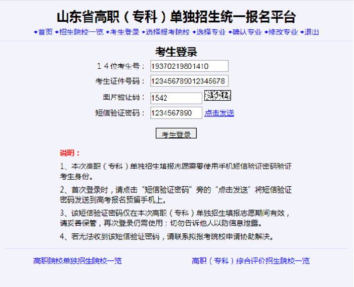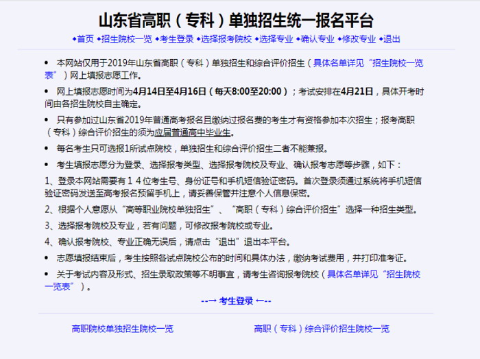 山东省教育招生考试院高职单招、综合评价招生统一报名平台,网址:http://wsbm.sdzk.cn/gzdz