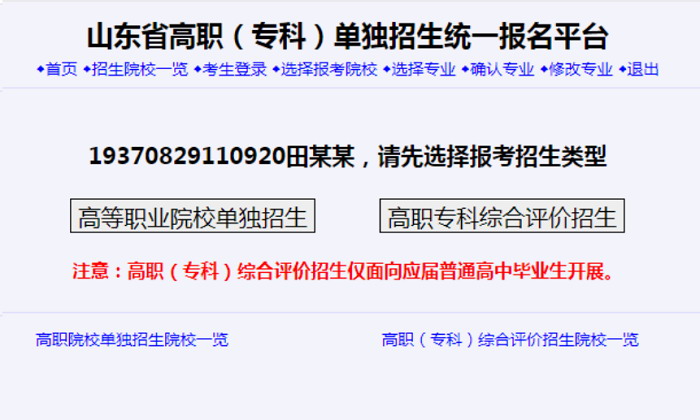 (三)选择报考类别(单独招生、综合评价招生),综合评价招生和单独招生二者不能兼报。