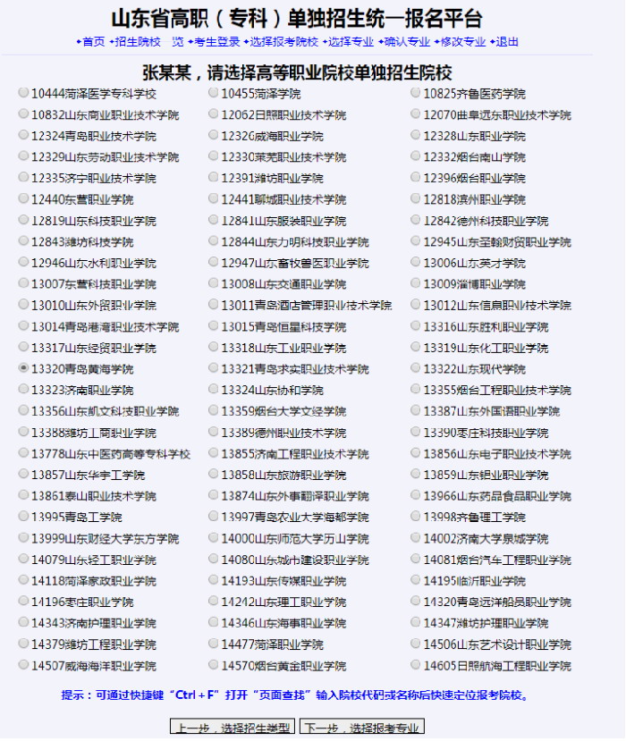 (四)选择报考800cc全讯白菜网主站,点击“下一步,选择报考专业”