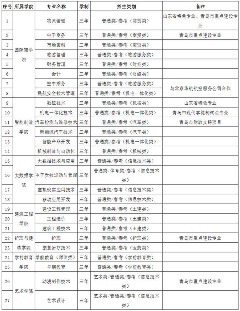 注:1.实际招生专业、计划、学费标准以山东省教育招生考试院公布为准。