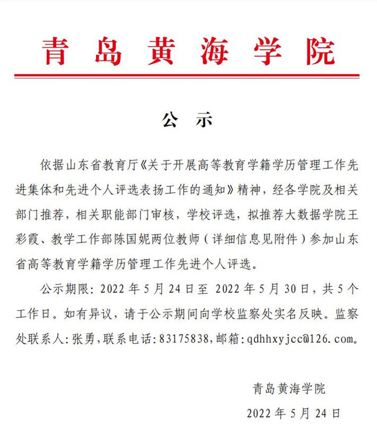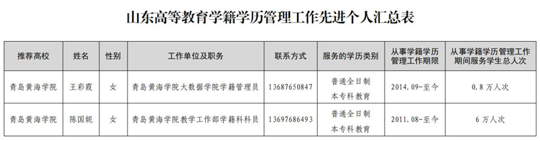关于山东省高等教育学籍学历管理工作先进个人拟推荐人选的公示