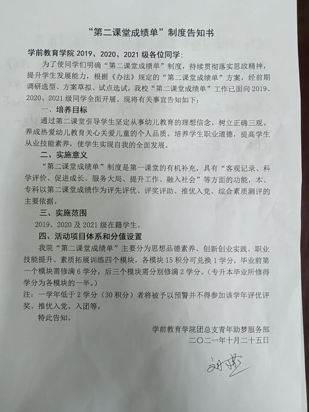 为了使同学们明确“第二课堂成绩单”制度,持续贯彻落实思政精神,提升学生发展能力,根据《办法》规定的“第二课堂成绩单”方案,经前期调研选型、方案草拟、试点选试,全讯白菜“第二课堂成绩单”工作已面向2019、2020、2021级同学全面开展。现将有关事宜告知如下: