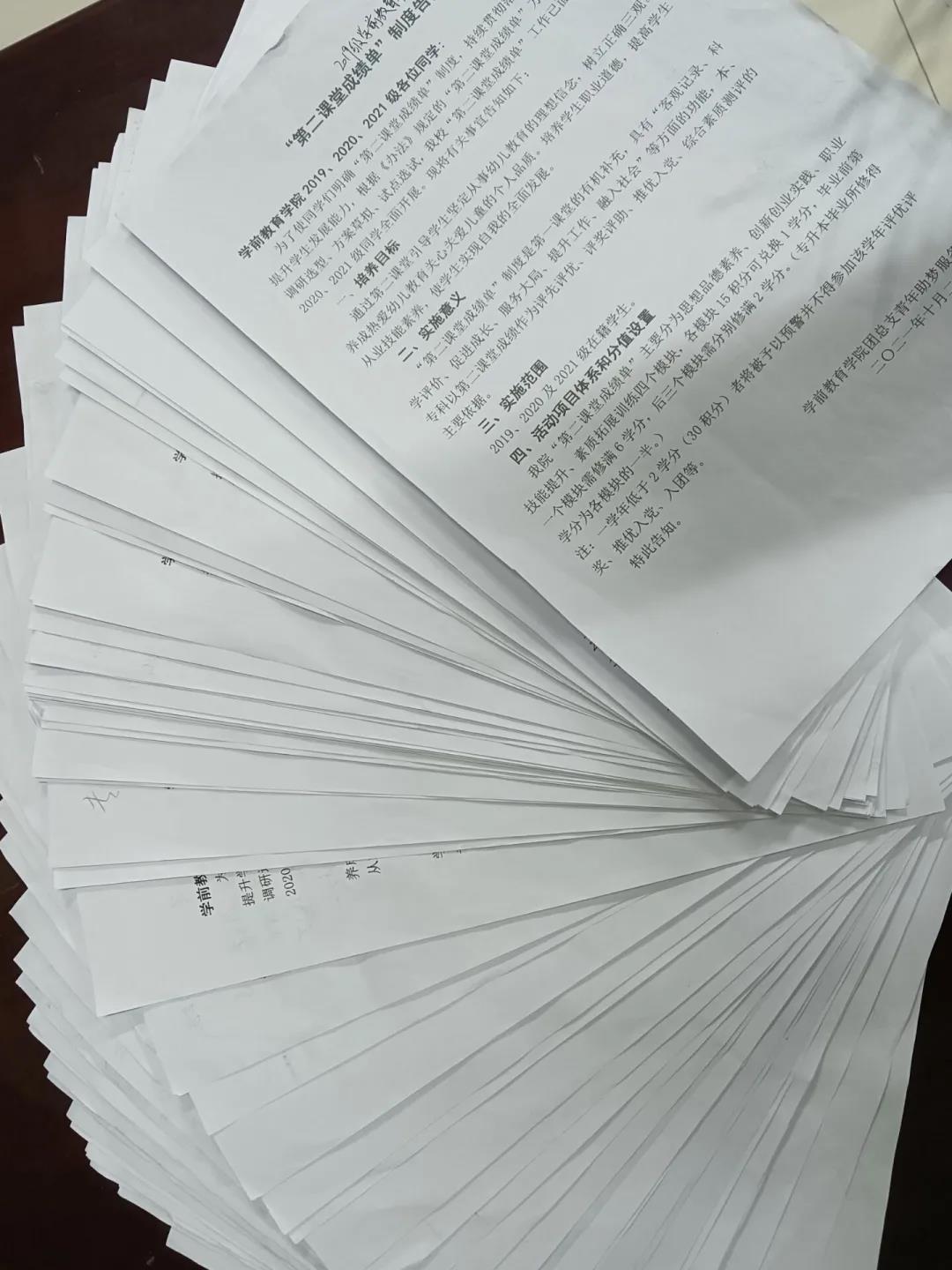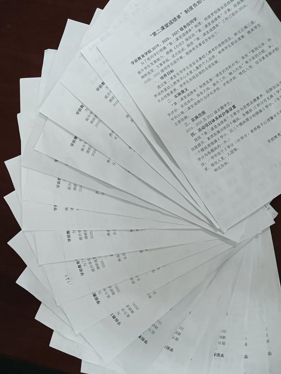 我院“第二课堂成绩单”主要分为思想品德素养、创新创业实践、职业技能提升、素质拓展训练四个模块,各模块15积分可兑换1学分,毕业前第一个模块需修满6学分,后三个模块需分别修满2学分。(专升本毕业所修得学分为各模块的一半。)