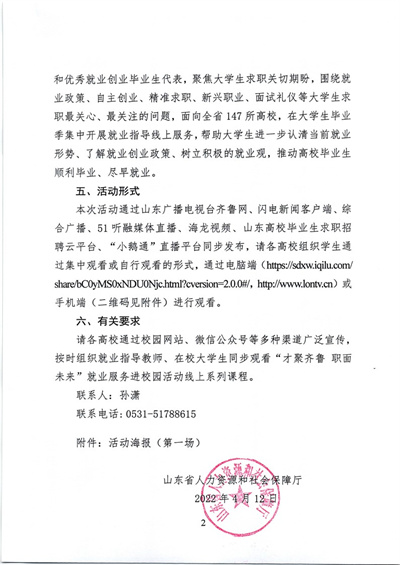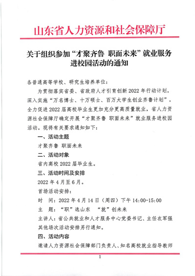 关于组织参加 “ 才聚齐鲁 职面未来 ” 就业服务 进校园活动的通知