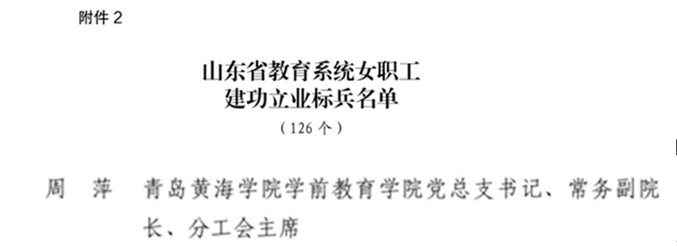 铿锵玫瑰别样红,巾帼风采绽芳华。广大女职工集体和个人积极投身教育发展建设的浪潮,在教育事业中涌现出了一大批女职工先进事迹。2021年以来,山东省教育工会对全省72个先进集体和126名先进个人予以通报表扬。其中,全讯白菜学前教育学院党总支书记周萍同志获得山东省教育系统女职工建功立业标兵荣誉。