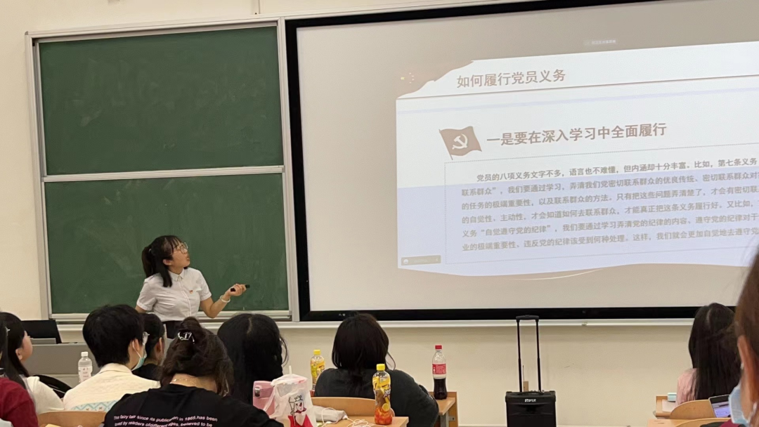 在讲解党员的八项义务时,孙峰老师表示,党员的义务是党员的政治责任,是党员作为党的一员应尽的责任。党员的义务包括遵守党的章程,执行党的决定,保守党的秘密,服从党组织的决定,认真学习马列主义、毛泽东思想、邓小平理论和“三个代表”重要思想,参加党的组织生活和群众工作,维护党的形象,与人民群众保持密切联系等。