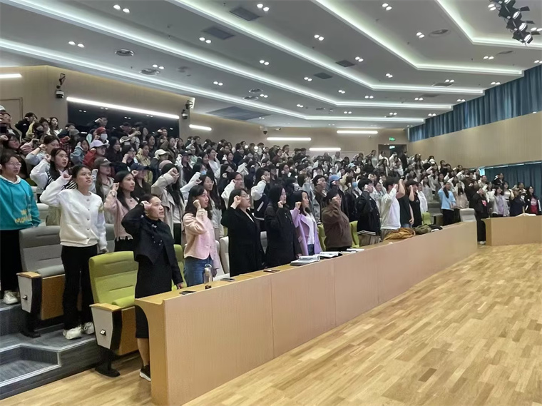 大会最后,在各班团支书同学的带领下,全体同学起立进行幼儿园教师的庄严宣誓。重温教师誓词,同学们感受更为强烈的育人激情和光荣责任,筑牢师德与信仰根基。