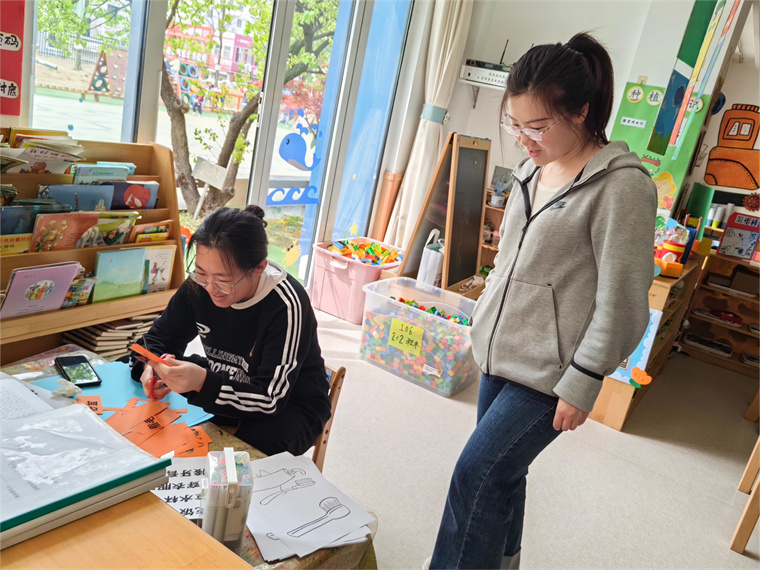 伊明园长带领老师们参观了幼儿园的整体环境,园所户外环境开阔、室内空间规划合理、设施丰富齐全、卫生干净整洁,能极大程度上满足幼儿的生活和成长需求。目前,我院2022级学前教育本科生正在这里见习,参观的过程中,老师们与园方、见习生围绕见习工作进行了深入交谈,伊园长对我院学生表示肯定:“这次来见习的学生都很好,工作认真细致,能够迅速与幼儿建立亲密的关系,积极主动帮助班级教师完成保育工作。”学生也纷纷表示能够非常迅速地适应幼儿园的节奏,并且学以致用,感触良多。伊园长结合本园的特点提出了对见习生的期望,要具备较高的专业素养和较强的实践能力。