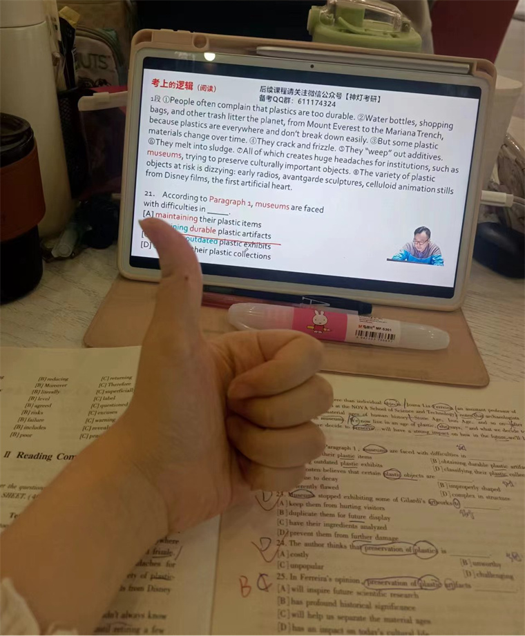 最后是真题。真题从暑假开始就可以做了,不要求做得多快,要看做的质量。从04年真题开始做起,一天一篇,有能力的同学一天两篇即可。不管是做对的还是做错的,都要给予一定的重视。考研英语只做英语真题即可,不需要花时间在某些机构的模拟题上,任何模拟题都不如真题的含金量。这里我推荐:唐迟老师和颉斌斌老师。从头到尾只需要跟一位老师即可,不需要学的太杂,学精最重要,一切以拿分为最终目的。