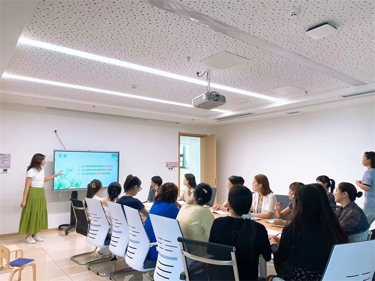 随后,由婴幼儿教育教研室教师沈丽雪,结合全国一线幼儿园实践经验,对幼儿园体智能课程的实施情况进行详尽的剖析与分享,为与会者提供了一线教育视角的宝贵见解。