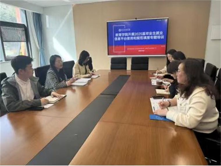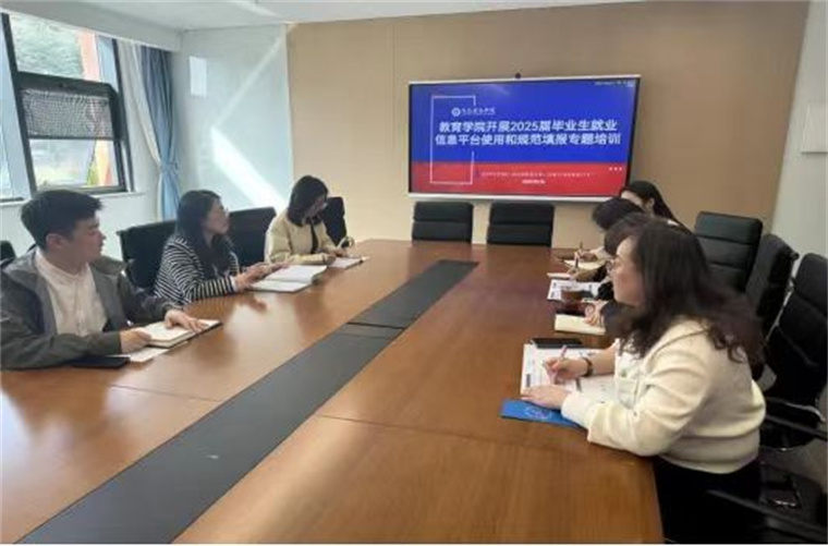 为扎实推进2025届毕业生就业信息规范填报工作,提升毕业生就业意向填报效率,强化学生职业发展意识,3月26日,教育学院组织召开就业信息平台使用和规范填报专题培训会,学院毕业班辅导员老师全员参与。本次培训会由就业秘书王安琪主讲。