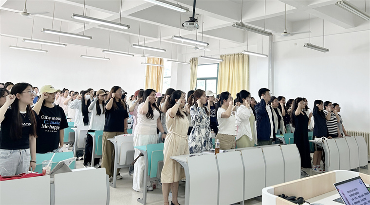 最后,在学生代表陆思佳的带领下,全体同学起立进行幼儿园教师宣誓,大会在同学们庄重的宣誓声中圆满结束。大会的召开标志着2023级学前教育专科生教育实习工作正式启动。相信同学们定能不负期望,在实习中锤炼本领,满载收获!